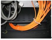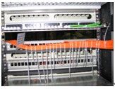 上述要求同样适用于机柜后侧。既然水平双绞线布置成瀑布型已经不再理想,因此对机柜内的水平双绞线就应该进行理线。