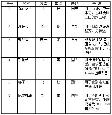 正向理线所需工具十分简单,均为常用工具,其中的自制工具可以在工地上就地取材,自行制作。工具清单如下:
